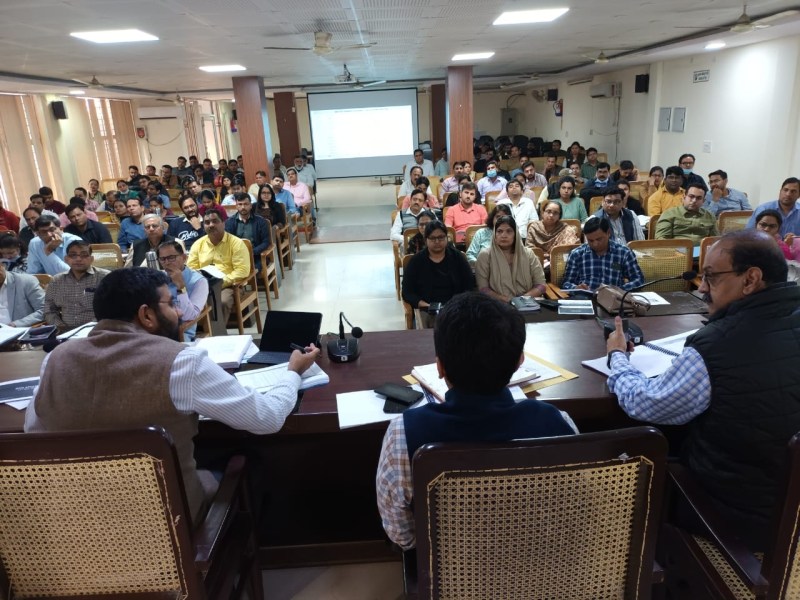 स्वास्थ्य समिति की बैठक में भाग लेते स्वास्थ्य विभाग के अधिकारी और कर्मचारी