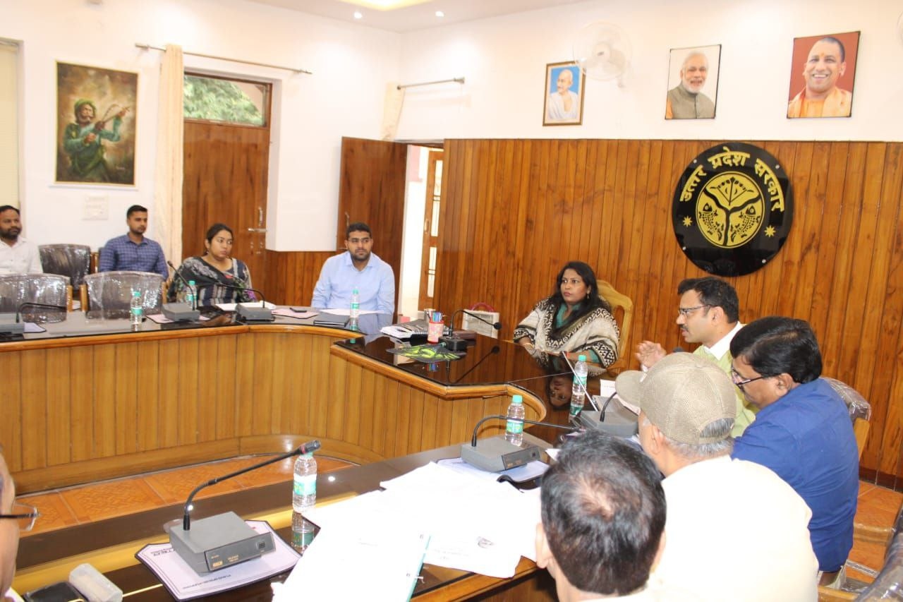 निराश्रित गोवंश संरक्षण अभियान प्रगति की समीक्षा बैठक करतीं मंडलायुक्त, मेरठ डीएम और अन्य अधिकारी।