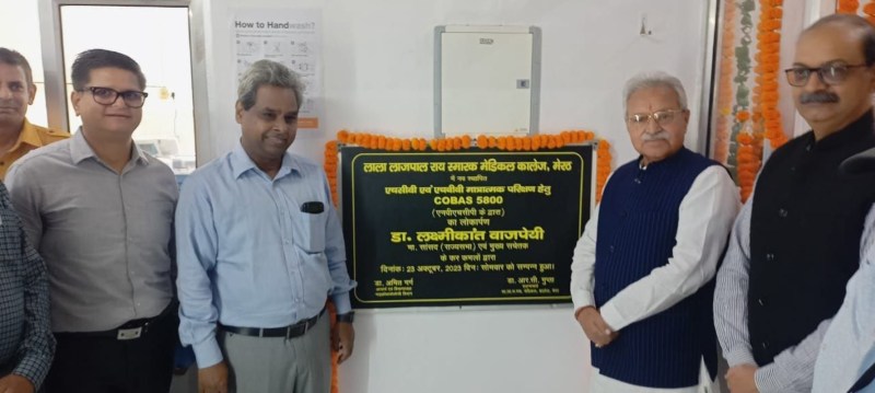 मेरठ मेडिकल कालेज में काला पीलिया जांच मशीन कोबास 5800 के उद्धाटन मौके पर सांसद डॉ.लक्ष्मीकांत वाजपेयी, मेडिकल कालेज प्राचार्य डॉ. आरसी गुप्ता, सीएमओ मेरठ और अन्य।