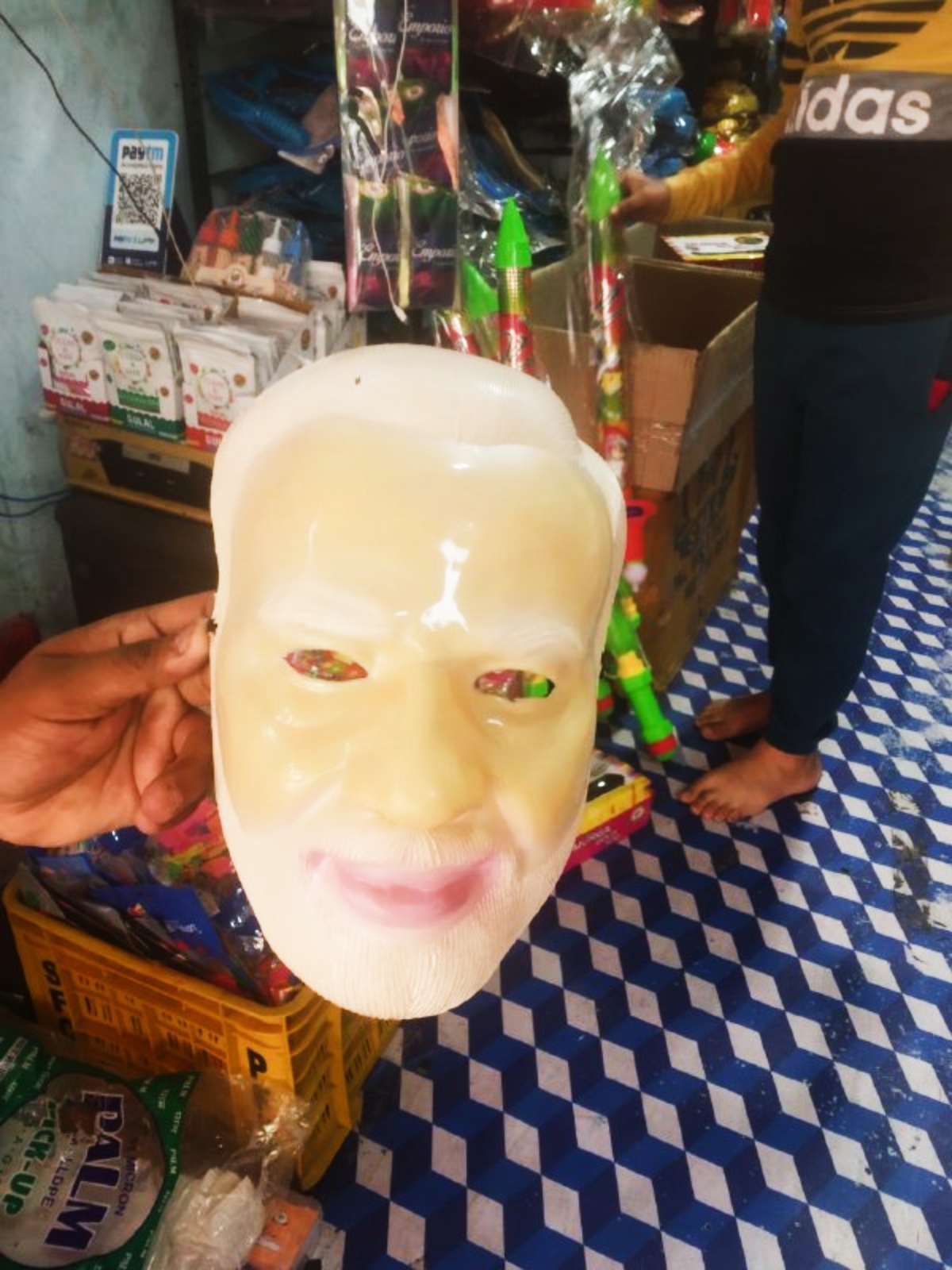 कुछ बच्चे ड्रैकुआ और चीता का मुखौटा खरीद रहे हैं। जोकर का मुखौटा भी बाजार में उपलब्ध है। लेकिन सबसे अधिक डिमांड पीएम मोदी के मुखौटा की है। बड़े से लेकर छोेटे तक अपने चेहरे के साइज का मुखौटा खरीद रहे हैं।