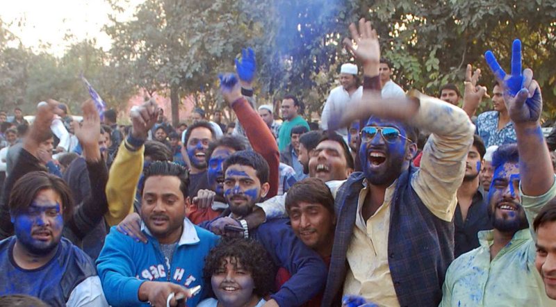 भाजपा के मेयर को दस साल बाद मेयर की कुर्सी छोड़नी पड़ी है। इसकी खुशी मनाने के लिए मुस्लिम और पिछड़े समाज के लोग दोपहर से ही जुटने लगे थे। उन्हें मालूम था कि अगर भाजपा उम्मीदवार कांता कर्दम भाजपा के गढ़ वाले शहर के इलाकों में भी बढ़त नहीं ले पा रही है, तो बसपा उम्मीदवार सुनीता वर्मा की जीत पक्की है। इसीलिए बसपा कार्यकर्ता और समर्थक इस जीत का जश्न मनाने के लिए अपने साथ बड़ी मात्रा में नीले रंग का गुलाल लाए थे। जैसे ही सुनीता वर्मा की जीत की घोषणा हुर्इ, तो मुस्लिम और पिछड़े समाज के लोगों और बसपा कार्यकर्ताओं ने जमकर नीले गुलाल से होली खेली और देर रात तक जश्न मनाया।