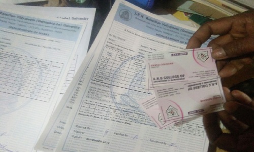 किठौर स्थित भटीपुरा के जंगल स्थित एक मकान में एएनजी के नाम से एक कॉलेज संचालित हो रहा था। इस कॉलेज की आड़ में फर्जी डिग्री बांटने का काम किया जाता था। आरोप है कि ये फर्जी डिग्रियां नावेद अली बनाता था। इस काम के लिए उसने बकायदा कुछ कम्प्यूटर ऑपरेटर रखे हुए थे, जिनसे वह इस काम को करवाता था। जंगल में बने इस भवन में कम्प्यूटर से सिंघानिया यूनिवर्सिटी, मोनार्ड यूनिवर्सिटी, जेआरएम विद्यापीठ यूनिवर्सिटी और कई अन्य डीम्ड यूनिवर्सिटीज की फर्जी मार्कशीट बनाई जा रही थी। कम्प्यूटर पर काम कर रहे लोग मौके पर पुलिस को देखकर खिड़की खोलकर जंगल की ओर भाग गए। मौके पर ग्राम प्रधान के लैटर पैड, बेसिक शिक्षा से संबंधित सरकारी आधिकारी से जुड़े कागज के साथ ही मार्कशीट बनाने में इस्तेमाल होने वाले पेपर, प्रिंटर व सॉफ्वेयर की सीडी बरामद हुई है। पुलिस के हत्थे एकमात्र कंप्यूटर ऑपरेटर ही चढ़ पाता। जिससे यहां चल रहे गोरखधंधे के बारे में खुलासा किया।