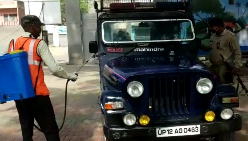 मेरठ। मेरठ में कोरोना के बढ़ते संक्रमण को देखते हुए जिले में अब तक 19 हॉटस्पॉट बनाए गए हैं। इन सभी हॉटस्पॉट में पुलिसकर्मी और स्वास्थ्य विभाग की टीमें अपनी जान जोखिम में डालकर ड्यूटी कर रही है। ऐसे में जब ड्यूटी पर तैनात या गश्त कर रही टीम की शिफ्ट बदली जाती है तो पूरे तरह से वाहनों और ड्यूटी पर तैनात पुलिसकर्मियों और स्वास्थ्यकर्मियों को सैनिटाइज किया जाता है। वाहनों को भीतर और बाहर से पहिए समेत सैनिटाइज किया जाता है।