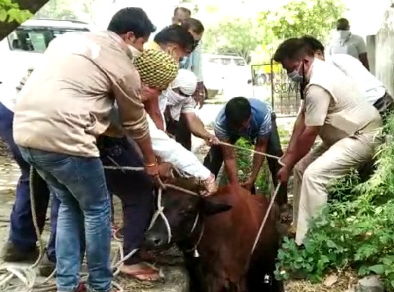 मेरठ। लोगों की मदद के साथ ही अब सड़कों पर घूम रहे आवारा पशुओं की जान भी मेरठ का प्रशासन और पुलिस बचा रही है। शनिवार को कंट्रोल रूम पर सूचना दी गई कि एक गाय नाले में गिरकर फंस गई है। सूचना मिलते ही गाय को निकालने के लिए पुलिसकर्मियों ने दौड़ लगा दी। काफी मशक्कत के बाद गाय को बाहर निकाला गया। गाय निकालने में मदद करने वाले सिपाही विजय पाल ने बताया कि उनको कंट्रोल रूम से सूचना मिली थी कि एक गाय नाले में गिर गई है। उसको निकालने के लिए आप लोग जाएं। उसी आदेश के तहत हम लोग गाय निकालने के लिए पहुंचे। हमने गाय को नाले से बाहर निकाला और उसके लिए चारे का इंतजाम भी किया।