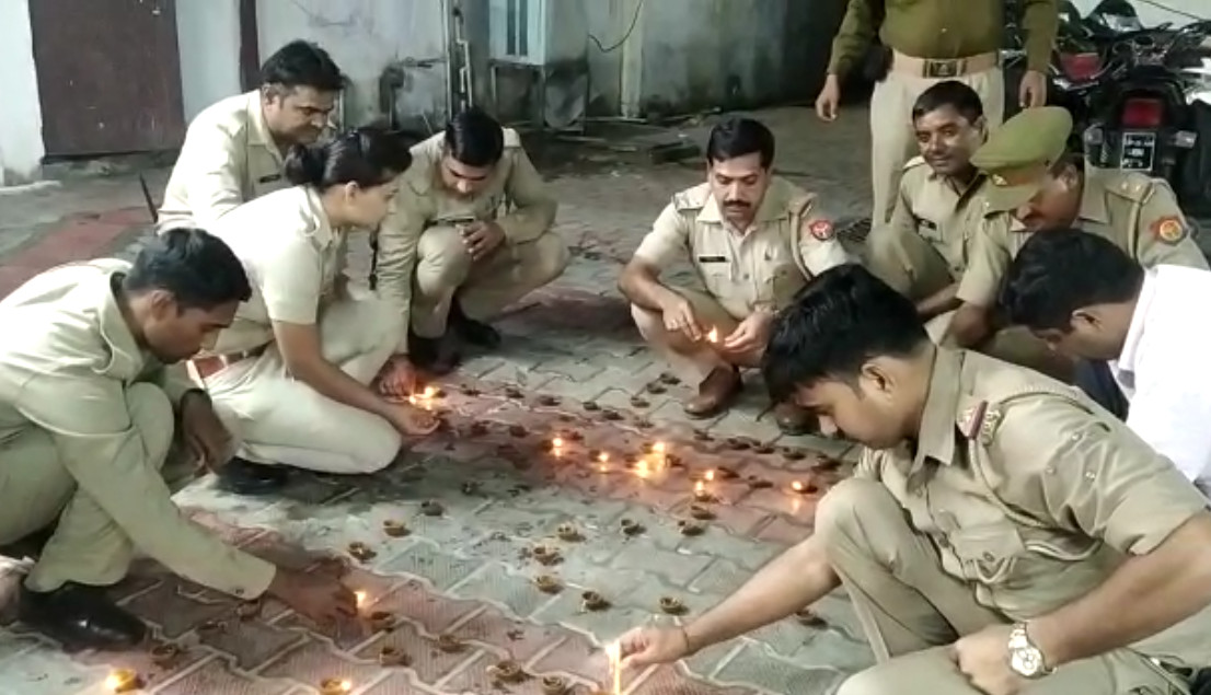 मेरठ। मेरठ के सदर थाने की सजावट देखकर लोग दंग रह गए। थाने को दुल्हन की तरह सजाया गया था। सदर थाने के थानेदार विजय गुप्ता खुद सिपाहियों के साथ जमीन में बैठकर दीपक जला रहे थे। इस दौरान पंडित को बुलाकर थाने में दीपावली की पूजा-अर्चना आदि कराई गई। थानेदार विजय गुप्ता ने बताया कि थाने भी सरकारी कार्यालय होते हैं। जैसे अन्य सरकारी कार्यालयों को राष्ट्रीय पर्व और त्योहारों के मौके पर सजाया जाता है उसी तरह थानों की भी सजावट होनी चाहिए। इससे नकारात्मक उर्जा का समाप्त होती और पाजिटिव एनर्जी का वास होता है। उन्होंने बताया कि थाने में बहुत से लोग ऐसे होते हैं जो ड्यूटी के कारण अपने परिजनों के साथ दिवाली नहीं मना पाते हैं। ऐसे में उन लोगों के साथ थाने में ही दिवाली मना ली जाती है। जिससे उन्हें इस बात का अहसास नहीं होता कि वे अपने परिजनों से दूर हैं।