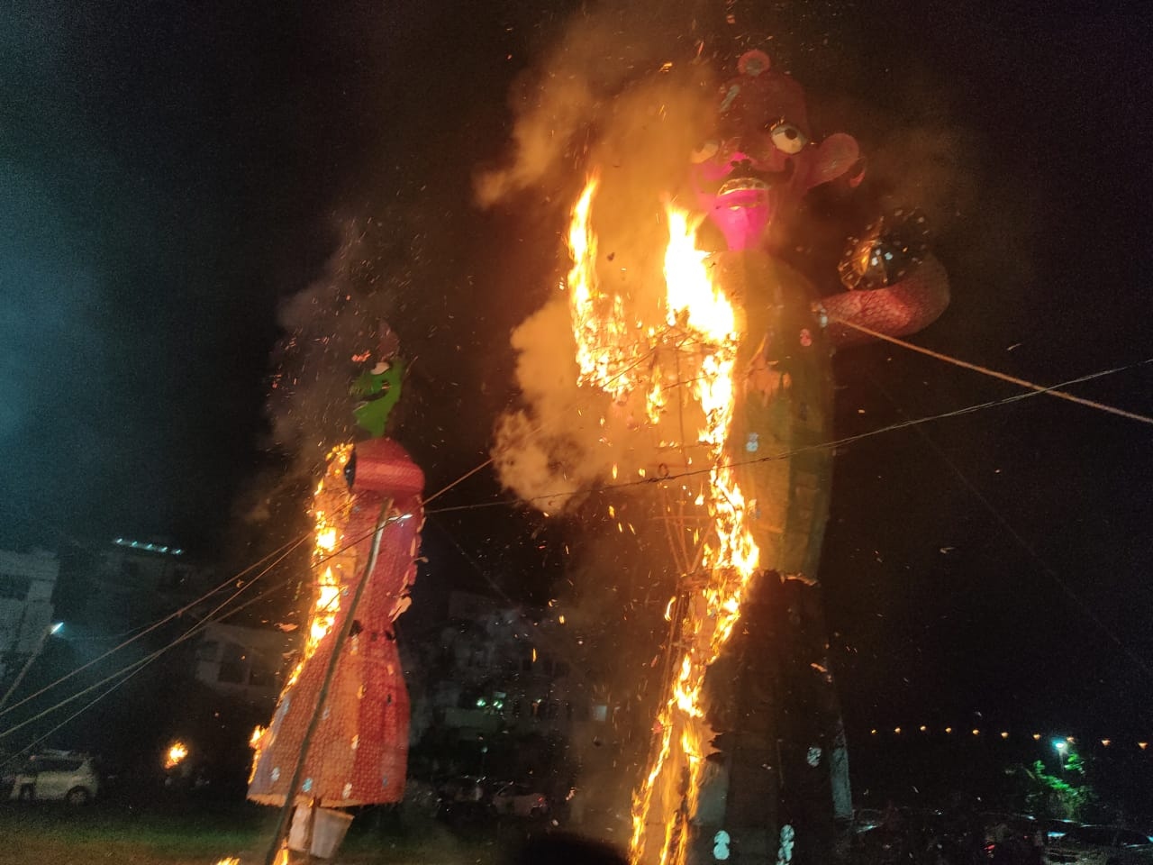 श्रीराम ने मारा लंकाधिपति रावण की नाभि में तीर तो आतिशबाजी के जला पुतला