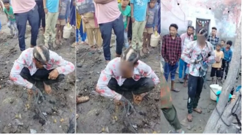 इसके बाद आरोपी लखन को बीच चौराहे पर ले आए। आरोपियों ने लाखन का मुंह काला किया और फिर भीड़ के सामने गंजा कर दिया। इस दौरान उसके गले में जूते-चप्पलों की माला डाली गई।