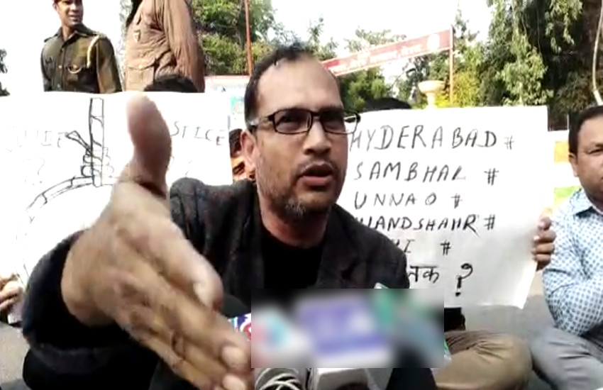 मेरठ. हैदराबाद में महिला पशु चिकित्सक के साथ हुई हैवानियत से पूरे देश में आक्रोश है। वहीं शिक्षकों ने भी सड़क पर उतरकर आक्रोश जताया है। मेरठ के विभिन्न हिस्सों में लोगों ने सड़क पर उतरकर प्रदर्शन किए। प्रदर्शन के दौरान दोषियों को कड़ी सजा देने व महिला चिकित्सक को न्याय देने की मांग की गई। विरोध-प्रदर्शन के दौरान मेरठ के शिक्षकों ने कहा कि अगर सरकार के बस की बात नहीं है तो हम न्याय करेंगे।
