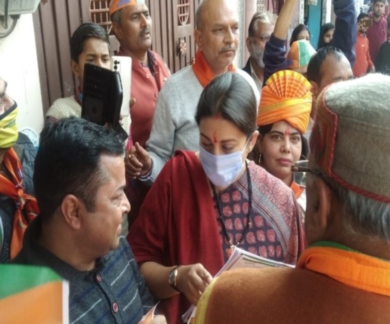 UP assembly elections 2022 : स्मृति ईरानी ने मुस्लिम बस्ती पहुंचकर गिनाई सरकार की उपब्धियां मांगी भाजपा के लिए वोट