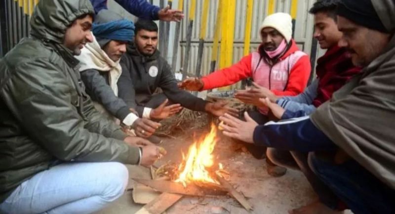 यूपी में ठंड से बचने के लिए लोग आग जला ताप रहे हैं।