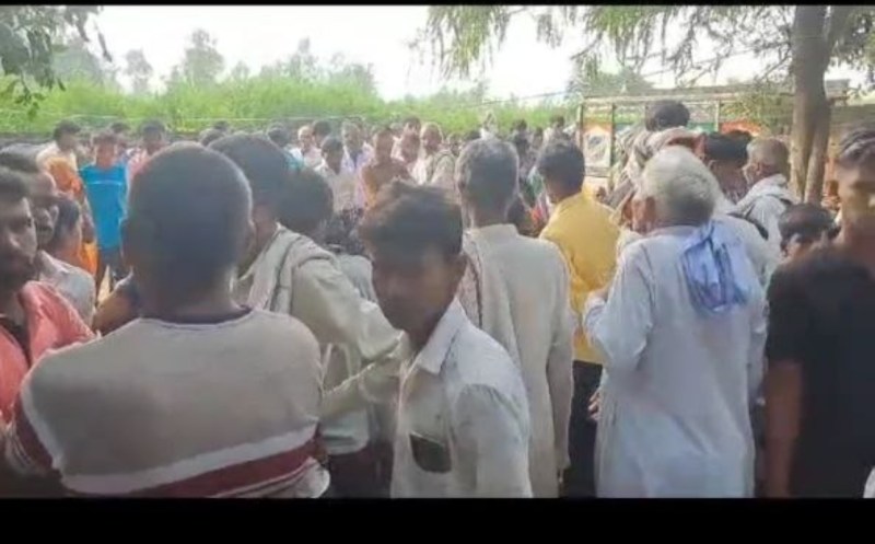 मेरठ के थाना लोहियानगर क्षेत्र के आशियाना कॉलोनी में युवक की हत्या के बाद मौके पर जमा मोहल्लेवासियों की भीड़।