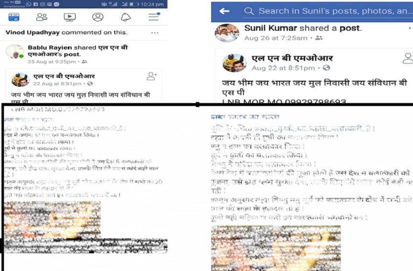 मिर्ज़ापुर. फेसबुक पर हिन्दू देवी देवताओं पर आपत्तिजनक पोस्ट करने के मामले में हिन्दू युवा वाहिनी के विरोध के बाद दो लोगों पर मुकदमा दर्ज कर जिले की पुलिस आरोपियों की तलाश में जुट गई है। इन दोनों आरोपोयों में से एक ने पूर्व में भी सीएम योगी आदित्यनाथ का विवादित पोस्ट शेयर किया था।
