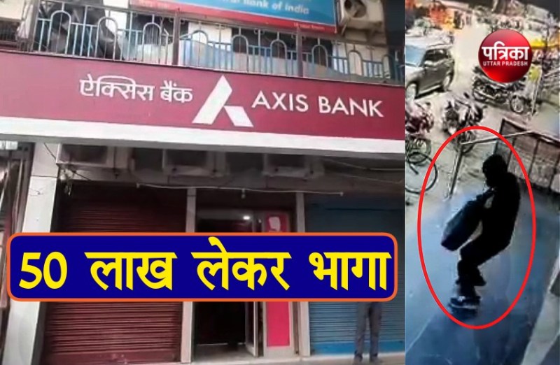 मिर्जापुर. यूपी के मर्जापुर में एक्सिस बैंक में उस समय हड़कम्प मच गया जब अचानक कैश काउंटर से 50 लाख रुपये गायब हो गए। खबर मिलते ही पुलिस के अधिकारी तत्काल मौके पर पहुंचे और वहां की सीसीटीवी फुटेज खंगाला। फुटेज में पास खड़ा एक व्यक्ति रुपयों से भरा बैग लेकर बैंक से बाहर निकलता हुआ दिखा। पुलिस फुटेज के आधार पर बैग लेकर भागने वाले की तलाश में जुट गई है।