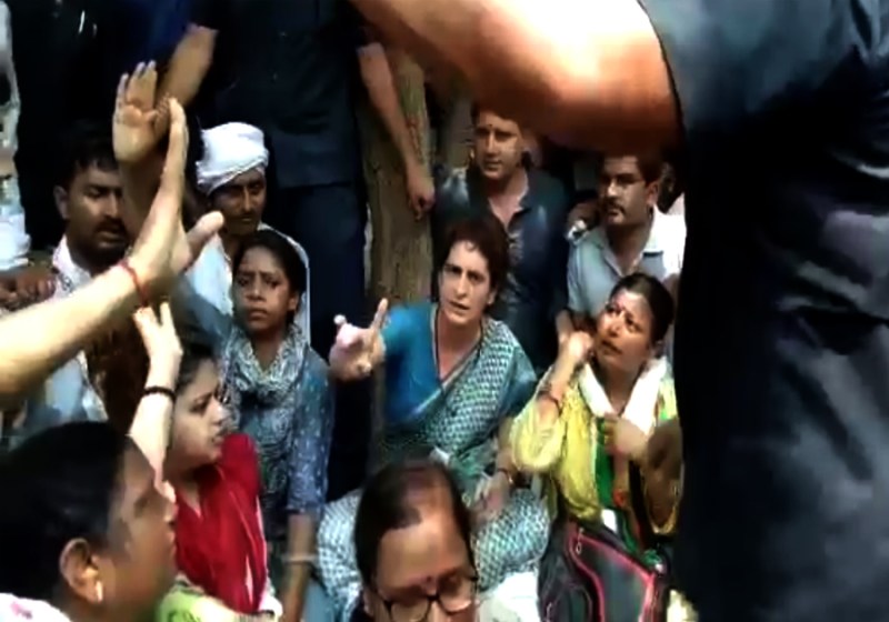 जब प्रशासन ने पीड़ितों को को अंदर नहीं आने दिया और उन्हें भी बाहर जाकर मिलने की इजाजत नहीं दी तो प्रियंका गांधी सुरक्षा घेरा बनाकर पीड़ितों के बीच पहुंच गयीं और वहीं जमीन पर बैठ गयीं। वहां पहुंचे पीड़ित परिवार के एक सदस्य ने कहा कि वो लोग करीब 15 आदमी एक ऑटो से चुनार आए हैं प्रियंका गांधी से मिलने के लिये। प्रशासन के इस रवैये पर प्रियंका गांधी का काफी नाराज दिखीं। उन्होंने कहा कि प्रशासन चाहे जो कर ले वो पीड़ितों से हर हाल में मिलेंगी। उन्होंने सवाल उठाया कि पहले तो आपने हमें उनसे मिलने जाने नहीं दिया और अब जबकि पीड़ित खुद उनसे मिलने पहुंचे हैं तो उन्हें क्यों रोका जा रहा है।