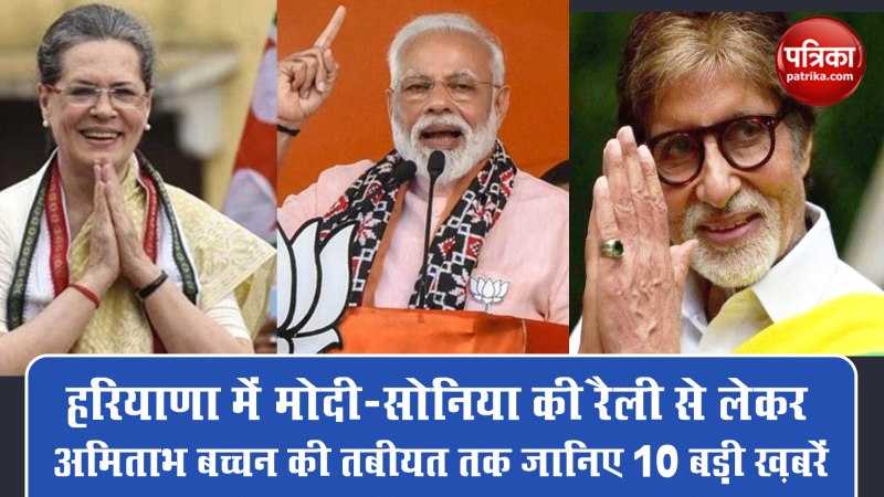 महाराष्ट्र और हरियाणा में चुनाव प्रचार का अंतिम दौर जारी है। लेकिन उससे पहले शुक्रवार को प्रधानमंत्री नरेंद्र मोदी और यूपीए चेयरपर्सन सोनिया गांधी की आज हरियाणा में चुनावी रैली है। बता दें कि सोनिया गांधी की ये इस विधानसभा चुनाव की इकलौती रैली है।