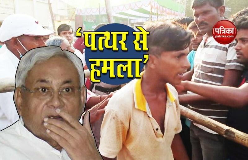 चुनावी सभा के दौरान युवक ने नीतीश कुमार पर पत्थर फेंका।