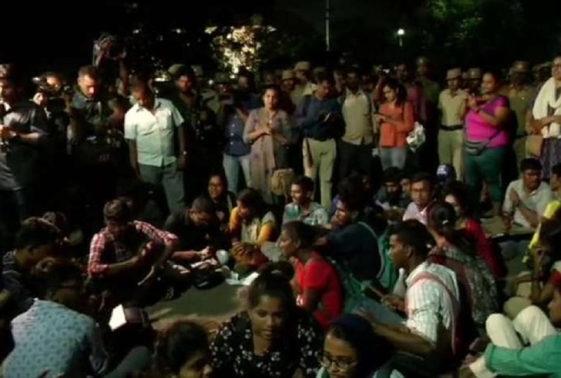 राजनीति विज्ञान में एमए द्वितीय वर्ष के एक छात्र एटी एलाक्कियन के अनुसार- "प्रदर्शन कर रहे सभी विद्यार्थियों को पुलिस अपनी वैन में त्रिप्लिकेन पुलिस थाने ले गई और हमें अपने घर जाने को कहा गया। पुलिस ने हमें थाने चलने को कहा था जिसका हमने विरोध किया।"