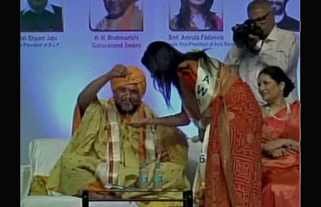 पुणे। महाराष्ट्र के सीएम देवेंद्र फड़णवीस की पत्नी विवादों में फंस गई हैं। एक तांत्रिक ने जादू से लाई चेन को सीएम की पत्नी अमृता फड़णवीस को दिया और उन्होंने उसे ले लिया। यह घटना रविवार को पुणे में सूर्यदत्ता ग्रुप ऑफ इंस्टिट्यूट्स की ओर से दिए जाने वाले राष्ट्रीय पुरस्कार समारोह में हुई। इस हार को लेने के बाद अंधविश्वास विरोधी कार्यकताओं ने अमृता की आलोचना की। मराठी चैनलों द्वारा लगातार प्रसारित किऐ जा रहे फुटेज में तांत्रिक गुरुवानंद स्वामी को अमृता को गले का एक हार देते हुए दिखाया जा रहा है जो कथित तौर पर हवा से प्रकट होता लगता है।