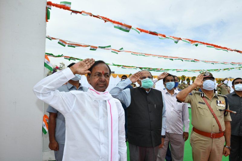 हैदराबाद। तेलंगाना के सीएम के.चंद्रशेखर राव ने बुधवार को राज्य के स्थापना दिवस के मौके पर अपने कार्यालय में राष्ट्रीय ध्वज फहराया। इससे पहले उन्होंने पृथ्क राज्य आंदोलन के शहीदों को गन पार्क में श्रद्धांजलि दी।