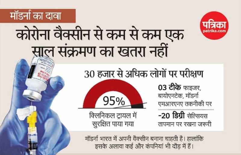 भारत में आपातकालीन उपयोग की मंजूरी पाने वाली दोनों वैक्सीन कोविशील्ड और कोवैक्सीन को लेकर दावा किया जा रहा है कि यह तीन से छह महीने का सुरक्षा कवच कोविड के खिलाफ देंगी। हालांकि अभी दोनों ही वैक्सीन का क्लीनिकल डाटा आना बाकी है। जबकि मॉडर्ना ने अपना क्लीनिकल ट्रायल पूरा होने के बाद कम से कम एक साल तक सुरक्षा मिलने का दावा किया है।