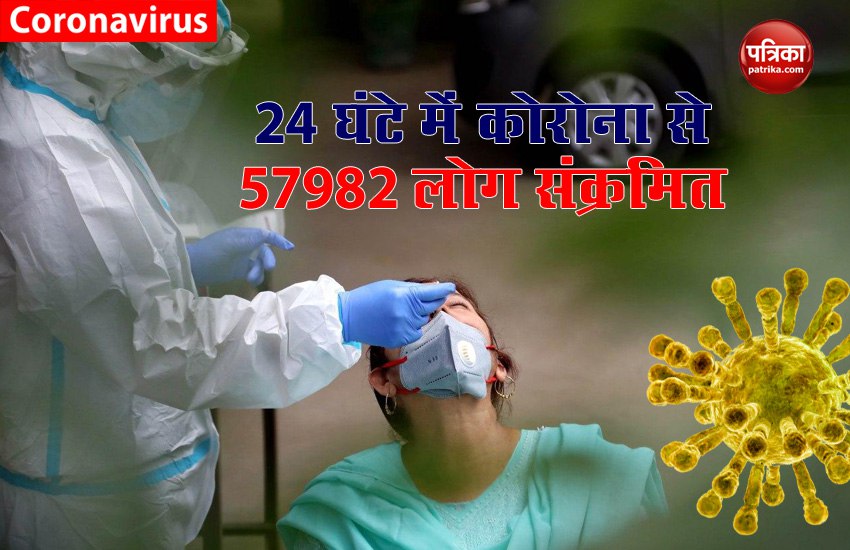नई दिल्ली। देशभर मे कोरोना वायरस महामारी ( Coronavirus Pandemic ) की चपेट में आने वाले मरीजों की संख्या में तेजी से बढ़ोतरी का सिलसिला बदस्तूर जारी है। अभी तक हर रोज 60 हज़ार से ज्यादा मरीज़ सामने आ रहे थे। अब उसमें थोड़ी कमी दर्ज की गई है। कोरेाना मरीजों ( Corona Patients ) को लेकर जारी ताजा आंकडों के मुताबिक पिछले 24 घंटों में 57982 नए मरीज सामने आए।
