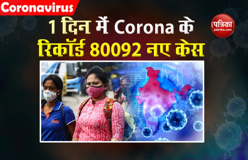 नई दिल्ली। देशभर में कोरोना वायरस महामारी ( Coronavirus Pandemic ) का विस्फोट चरम पर पहुंच गया है। पिछले 24 घंटे में कोरोना वायरस संक्रमित 80092 नए केस सामने आए। यह अब तक का सबसे बड़ा आंकड़ा है। इसी के साथ भारत ( Coronavirus in India ) एक दिन में सबसे ज्यादा कोरोना वायरस से संक्रमित होने वाला दुनिया का पहला देश बन गया है।