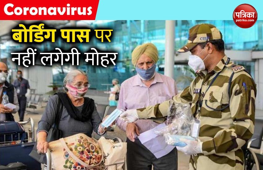अब तक दिल्ली, मुंबई और अहमदाबाद एयरपोर्ट पर अपनी सर्विस दे रहे सीआईएसएफ के 13 से ज्यादा जवान कोरोना वायरस से संक्रमित पाए गए हैं। इसको देखते हुए अब यात्रियों के बोर्डिंग पास पर मोहर नहीं लगाने का फैसला लिया गया है।