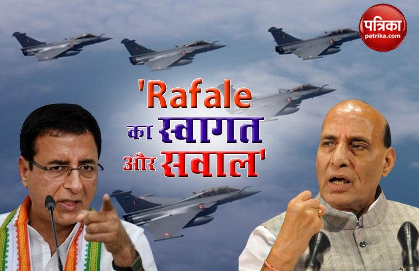 नई दिल्ली। फाइटर फ्लेन रफाल ( Fighter Plane Rafale ) का भारत (India) में आगमन हो चुका है। अंबाला एयरबेस ( Ambala Air Base ) पर सफलतापूर्वक पांच रफाल विमान (Rafal Plane) लैंड कर चुके हैं। रफाल के आने से पूरा देश गौरवान्वित महसूस कर रहा है। क्योंकि, दुश्मनों को मुंहतोड़ जवान देने के लिए भारतीय सैन्य शक्ति और ज्याद मजबूत हो गई है। वहीं, रफाल के भारत पहुंचने पर जहां रक्षा मंत्री ( Defence Minister ) राजनाथ सिंह ( Rajnath Singh ) भारतीय वायुसेना ( Indian Airforce ) को बधाई दी है। वहीं, कांग्रेस (Congress) पार्टी ने बधाई के साथ-साथ चार सवाल भी दागे हैं।