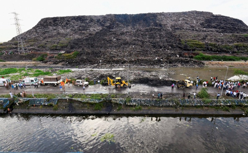 गाजीपुर डंपिंग यार्ड दिल्ली के उन चार जगहों में से एक है, जहां कूड़ा जमा किया जाता है। यहां पर जमा किए गए कूड़े की ऊंचाई 50 मीटर से भी ज्यादा ऊंची हो गई है। ये पूरा क्षेत्र 70 एकड़ में फैला हुआ है। कूड़े के इस पहाड़ को 1984 में खड़ा किया गया था। ऐसे ही ओखला में भी एक कूड़े के ढेर को बनाया गया है। विदित हो कि दिल्ली से रोज लगभग 14,000 टन कचरा निकाला जाता है।
