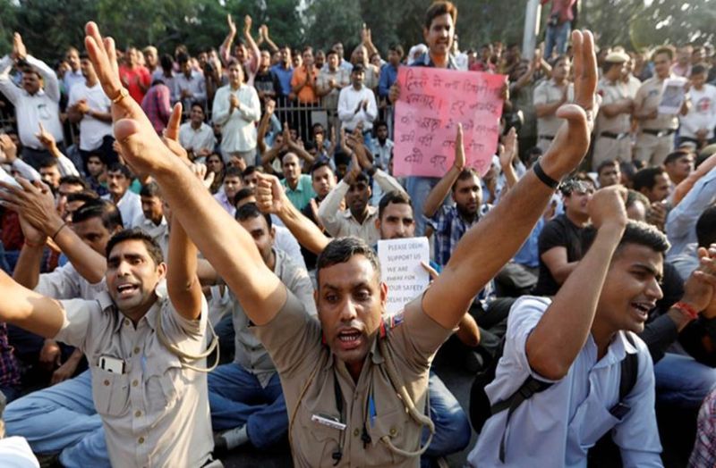 हरियाणा पुलिस दिल्ली पुलिस के समर्थन में उतरी