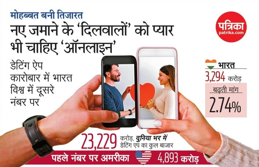 वैलेंटाइन वीक चल रहा है, प्यार—मोहब्बत इजहार का वक्त है। एक समय था, जब इन रिश्तों को बुनने में एक वक्त लगता था। अब हाल यह है कि युवा इन नए रिश्तों की खोज भी इंटरनेट और आॅनलाइन कर रहे हैं। यही वजह है कि देश और दुनिया भर में में डेटिंग एप की मांग तेजी से बढ़ी है और उसके पीछे उसका पूरा बाजार तेजी से खड़ा हुआ है। आज पूरी दुनिया में अमरीका के बाद हमारा देश भारत ही है जहां पर डेटिंग एप की कमाई सबसे ज्यादा है। पूरी दुनिया में इस साल के आखिर तक यह बाजार 23229 करोड़ रुपए का आंकड़ा पार कर जाएगा।