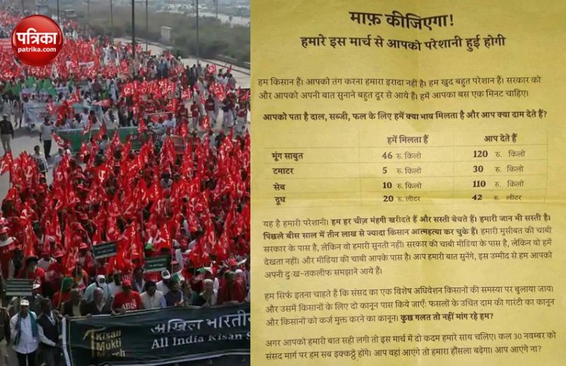 गुरुवार को दिल्ली के रामलीला मैदान से शुरू हुआ किसानों का मार्च आज संसद की तरफ कूच कर रहा है। इस बीच किसानों की मांग को लेकर सोशल मीडिया पर एक पर्चा तेजी से वायरल हो रहा है, जिसे किसान मुक्ति मोर्चा की तरफ से जारी किया गया है।