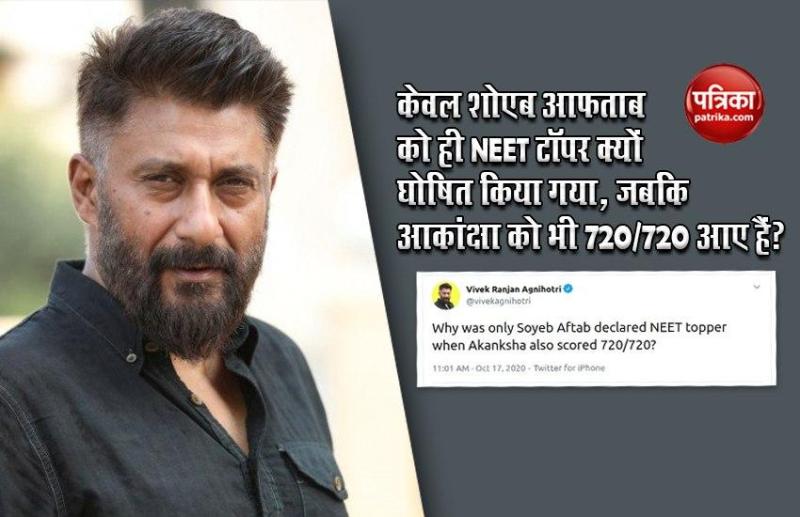 नई दिल्ली। नेशनल टेस्टिंग एजेंसी ने नीट 2020 ( NEET Result 2020 ) के नतीजे घोषित कर दिए हैं। इस बार नीट परीक्षा में दो छात्रों को बराबर नंबर आए हैं। ओडिशा के राउरकेल का रहने वाले शोएब आफताब ( Shoaib Aftab )और दिल्ली की रहने वाली आकांक्षा सिंह ( Akanksha Singh ) को 720 में से 720 नंबर आए हैं। लेकिन, शोएब आफताब को इंडिया टॉपर घोषित किया गया है। जबकि, आकांक्षा सिंह दूसरे स्थान पर रही। वहीं, नीट परिणाम को लेकर सोशल मीडिया पर भी बहस छिड़ गई है और भेदभाव करने की बात कही जा रही है। मशहूर फिल्म निर्देशक विवेक रंजन अग्निहोत्री ( Vivek Ranjan Agnihotri ) ने ट्वीट कर नीट परीक्षा के परिणाम पर सवाल उठाए हैं और कहा कि जब शोएब और आकांक्षा सिंह के बराबर यानी 720 में से 720 नंबर आए हैं तो शोएब आफताब ही टॉपर क्यों?