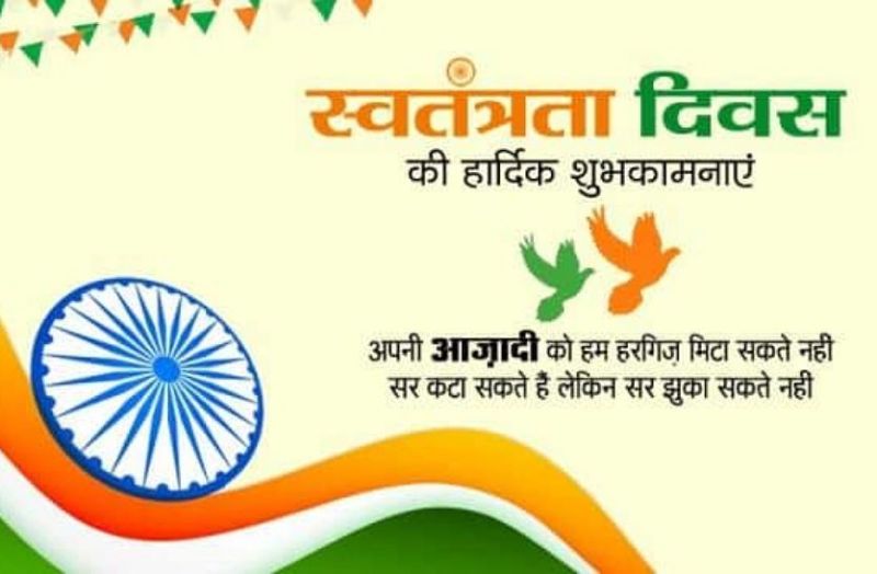 15 अगस्त देश को अंग्रेजों की हुकूमत से आजादी मिली थी। इस बार हम 75 वा स्वतंत्र दिवस मनाने जा रहे हैं। इस अवसर पर लोग स्वतंत्रता सेनानियों के बलिदान को याद करते हुए उन्हें श्रद्धांजलि भी अर्पित करते हैं। क्योंकि इस बार कोरोना वायरस के चलते अधिकतर लोग घर से बाहर नहीं निकलेंगे । ऐसे में लोग एक दूसरे को सोशल मीडिया के माध्यम से भी शुभकामना संदेश भेज कर इस दिन को यादगार बनाएंगे। इसलिए आप भी इनमें से कोई मैसेज, शुभकामना संदेश का उपयोग कर सकते हैं।