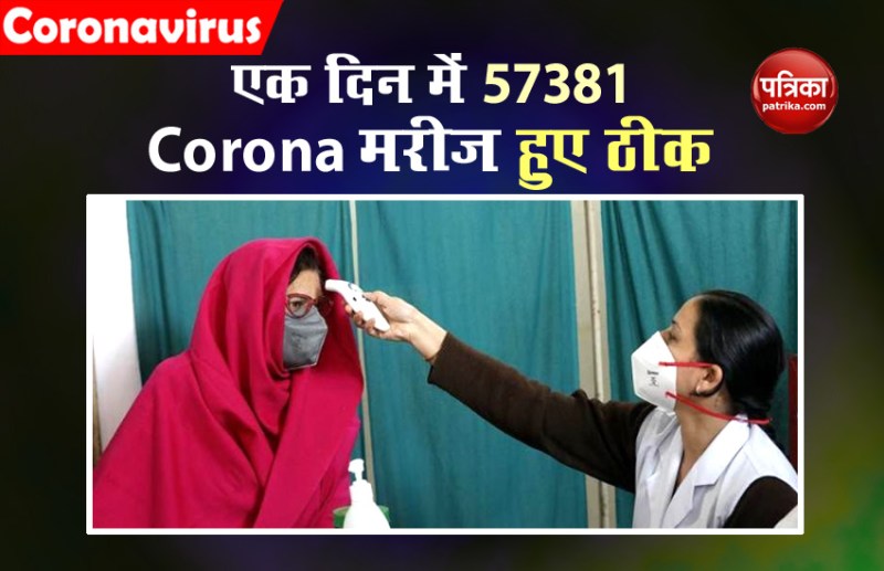 नई दिल्ली। एक तरफ कोरेाना वायरस ( Coronavirus Pandemic ) का कहर जारी है तो दूसरी तरफ इस महामारी के खिलाफ जंग में भी सफलता मिलने की दर में बढ़ोतरी जारी है। शनिवार को भारत ( India ) में सबसे ज्यादा 57,381 कोरोना मरीज ( Corona Patients ) इलाज के बार घर लौट गए। कोरोना से एक दिन में ठीक होने वालो लोगों की अब तक ये बड़ी संख्या है। इसके साथ ही भारत में कोरोना से ठीक होने वाले लोगों की संख्या बढ़कर 18 लाख हो गई है।