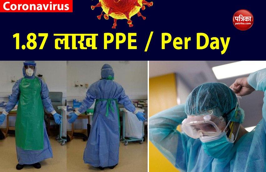 नई दिल्ली। पूरा देश इन दिनों कोरोना वायरस ( coronavirus ) का दंश झेल रहा है। इस खतरनाक वायरस से बचने के लिए ल़ाकडाउन ( Lockdown 3.0 ) लागू है। इसके बावजूद कोरोना संक्रमितों का आंकड़ा लगातार बढ़ता जा रहा है। वही, इस महामारी के खिलाफ जारी लड़ाई और तेज हो गई है। स्वास्थ्य व्यवस्था को और मजबूत किया जा रहा है। इसी कड़ी में सुर्खियों मे रहे पीपीई ( PPE ) को लेकर बड़ी खबर सामने आई है। बताया जा रहा है कि देश में अब हर दिन 1.87 लाख पर्सनल प्रोटेक्टिव इक्वीपमेंट शुरू हो गया है।