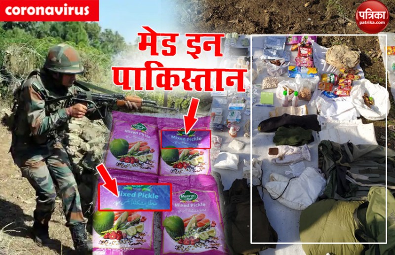 आतंकियों के पास से सेना को भारी मात्रा में खाने-पीने, पहनने समेत मेडिकल किट का सामान बरामद हुआ है। इनमें पाकिस्तान की बनी गिब्स गोल्ड दरबारी टिक्का मिक्स नमकीन, मेहरान का मिक्स्ड अचार, बिस्किट-जूस के पैकेट, ड्राई फ्रूट्स के पैकेट, इंजेक्शन, दवाइयां, मरहम-पट्टी समेत काफी अन्य सामान मिला है।