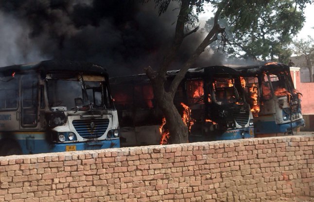 कल झज्जर और सोनीपत के निकट एक ठहराव पर आगजनी की। आंदोलनकारियों ने करीब