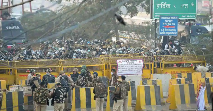 दिल्ली पुलिस किसानों के गिरफ्तारी में जुटी।