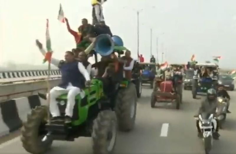सिंघु के पास कोंडली बॉर्डर पर किसानों का जत्था अपने ट्रैक्टर के साथ एकत्र होकर आगे बढ़ रहा है। भारतीय राष्ट्रीय राजमार्ग प्राधिकरण (NHAI) के अधिकारियों ने कहा कि ईस्टर्न पेरिफेरल एक्सप्रेस-वे पर ट्रैक्टरों की अनुमति नहीं है।