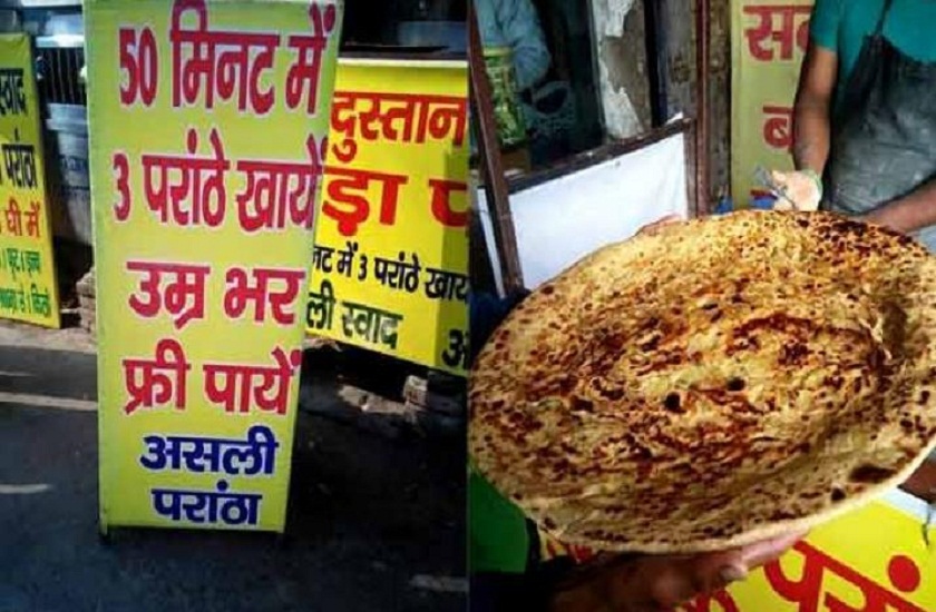नई दिल्ली। जिंदगी भर फ्री में खाना? सुनकर कैसा लगा? जिस हां ये संभव है लेकिन आपको उसके लिए एक चुनौती पर खरा उतरना पड़ेगा। आपको करना क्या है, आपको रोहतक-दिल्ली बाईपास पर स्थित तपस्या पराठा जंक्शन जाकर अकेले तीन पराठे खाने का चैलेंज पूरा करना पड़ेगा। 40 तरह की वैरायटी के पराठे बनाने वाले इस रेस्टोरेंट पर जाकर अगर आपने 50 मिनट में तीन पराठे खा लिए तो आपको जीवनभर यहां फ्री में खाना मिलेगा। अगर आप ये सोच रहे हैं कि इसमें क्या बड़ी बात है? तो पहले हम आपको बता दें इनके पराठों की खासियत, 'व्यास में ये 2 फुट, वजन में 1200 ग्राम, इसकी स्टफिंग 700 ग्राम की होती है, कीमत की बात करें तो ये 150 से 350 रुपए का होता है, खा गए न चक्कर?'