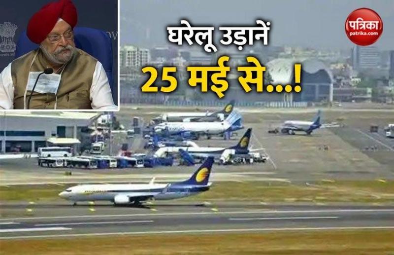 लॉकडाउन (Lockdown) के कारण हवाई सेवाएं बंद हैं। लॉकडाउन के चौथे चरण में माना जा रहा था कि उड़ानों को शर्तों के साथ मंजूरी दी जा सकती है। लेकिन तब सरकार ने ऐसा कोई ऐलान नहीं किया। अब केंद्रीय नागरिक उड्डयन मंत्री हरदीप सिंह पुरी ने जानकारी दी है कि 25 मई से चरणबद्ध तरीके से देश में विमान सेवाएं शुरू की जाएंगी। इसके लिए उन्होंने एयरपोर्ट्स और विमान कंपनियों को तैयारी रखने को कहा है। आज दोपहर 3 बजे केंद्रीय मंत्री पुरी प्रेस कॉन्फ्रेंस भी करेंगे।