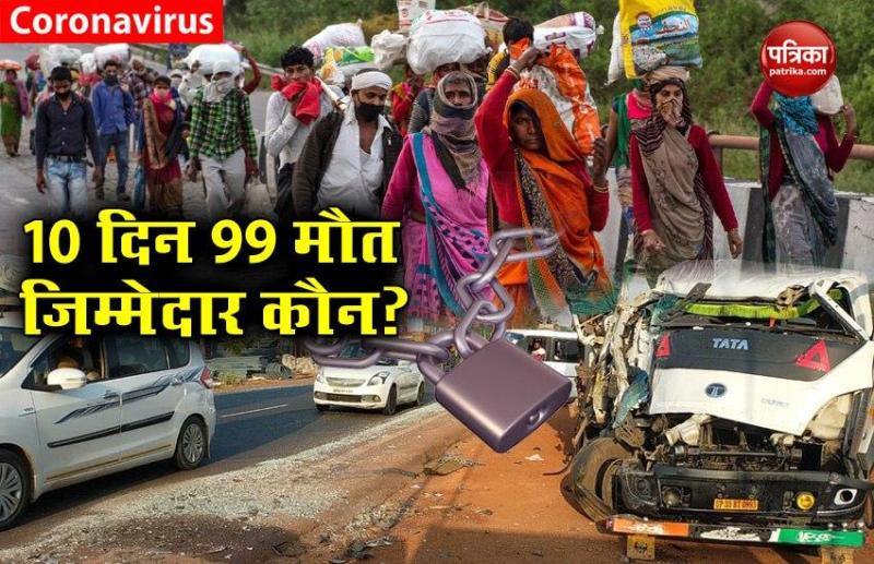 नई दिल्ली। देश में कोरोना वायरस ( coronavirus ) संकट के बीच लॉकडाउन जारी है। लॉकडाउन ( Lockdown ) की सबसे बड़ी मार प्रवासीय मजदूरों ( Migrant Labours ) पर पड़ी है। एक तो 'काम और पैसा' नहीं होने के कारण मजदूर अपने घर को पलायन कर रहे हैं। वहीं, दूसरी ओर कई जगहों पर सड़क हादसों में इनकी मौतें भी हो रही हैं। लॉकडाउन की डबल मार मजदूरों पर कैसे पड़ रही है, इसका अंदाजा आप इसी से लगा सकते हैं कि महज 10 दिनों में 99 मजदूरों की अलग-अलग हादसों में मौत हो गई है। इन हादसों ( Accident ) के साथ बड़ा सवाल ये भी उठ रहा है कि आखिर इन मजदूरों के मौत का जिम्मेदार कौन है?