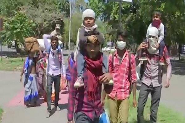 प्रवासी मजदूरों को बिना चप्पल पैदल निकलने के लिए मजबूर किया गया।