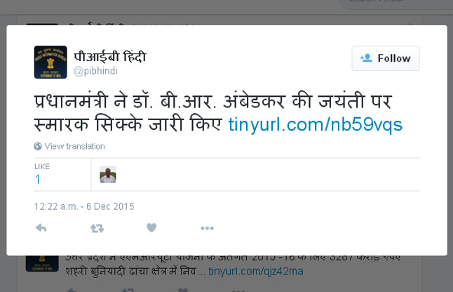 नई दिल्ली। चेन्नई में बाढ़ का जायजा लेने के दौरान खींची गई प्रधानमंत्री मोदी की फोटोशॉप की गई तस्वीर जारी करने के बाद आफत में आई सरकारी समाचार एजेंसी पीआईबी एक बार फिर दिक्कत में आ सकती है। इस बार पीआईबी ने भीमराव अंबेडकर की पुण्यतिथि को उनकी जयंती बता दिया। पीआईबी ने यह गलती न सिर्फ अपनी वेब लाइट पर की बल्कि इसे सोशल नेटवर्किंग साइट Twitter के माध्यम से पोस्ट भी कर दिया।