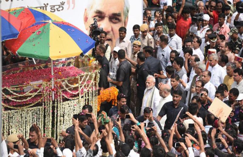 नई दिल्ली। पूर्व प्रधानमंत्री और भारत रत्न अटल बिहारी वाजपेयी के निधन पर पूरे देश गम में डूबा हुआ है। शुक्रवार को उनका अंतिम संस्कार किया गया। अंतिम यात्रा मेें भी जनसैलाब उमड़ पड़ा था। इस अंतिम यात्रा में पीएम मोदी और भारतीय जनता पार्टी के अध्यक्ष अमित शाह भी पैदल चलते हुए नजर आए। इस दौरान उनकी सुरक्षा चाक चौबंद थी। उनकी सुरक्षा बढ़ा दी गई थी। खबरों के मुताबिक अंतिम यात्रा में जब प्रधानमंत्री मोदी ने फैसला किया कि वह 'स्मृतिवन' तक पैदल जाना चाहते हैं तो सुरक्षा एजेंसियों के लिये बड़ी मुश्किल खड़ी हो गई। मीडिया में आई खबरों के अनुसार भाजपा मुख्यालय में प्रधानमंत्री की सुरक्षा व्यवस्था संभालने वाली स्पेशल प्रोटेक्शन ग्रुप (एसपीजी) को बताया कि प्रधानमंत्री पैदल ही यह दूरी तय करेंगे और उनके साथ अमित शाह भी होंगे। ये बात आखिरी वक्त में बताई गई। तुरंत निर्णय लिया गया और दिल्ली पुलिस के गुप्तचर तैनात कर दिये गये।