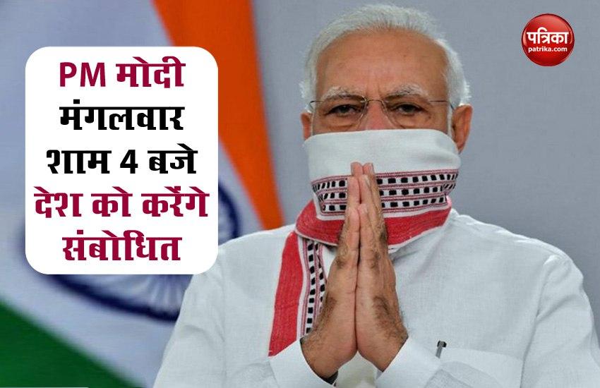 नई दिल्ली।प्रधानमंत्री नरेंद्र मोदी ( PM Narendra Modi ) एक बार फिर देश से मुखातिब होंगे। वह मंगलवार की शाम चार बजे राष्ट्र को संबोधित करेंगे ( PM Narendramod will address the nation )। प्रधानमंत्री कार्यालय ( PMO ) के ट्विटर हैंडल ने सोमवार को ट्वीट कर यह जानकारी दी। माना जा रहा है कि प्रधानमंत्री मोदी ( PM Modi ) अनलॉक 2.0 ( Unlock 2.0) और देश के मौजूदा हालात पर अपने विचार रखेंगे। चीन से सीमा पर चल रहे तनाव के बीच प्रधानमंत्री मोदी के इस संबोधन को लेकर लोगों में और उत्सुकता है।