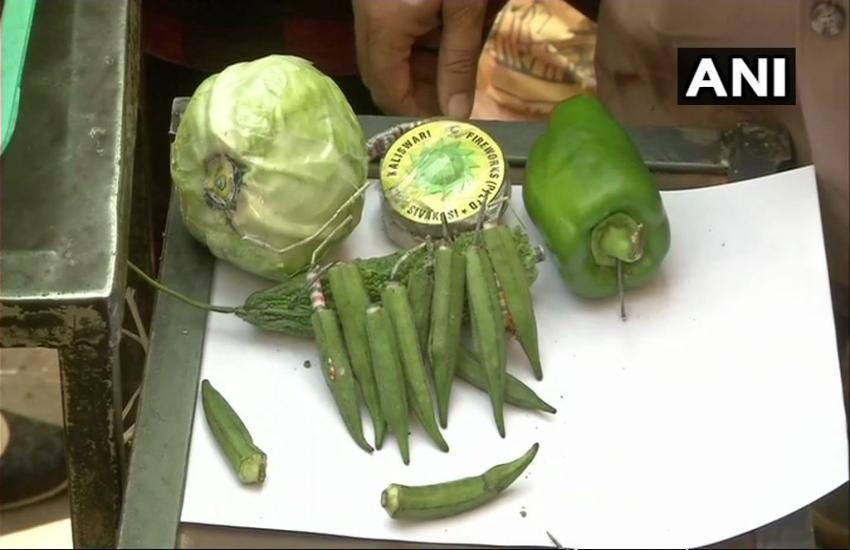 'ग्रीन दिवाली फुस्स' होने पर व्यापारियों का अनोखा विरोध, हरी सब्जियों में पटाखे रख किया प्रदर्शन