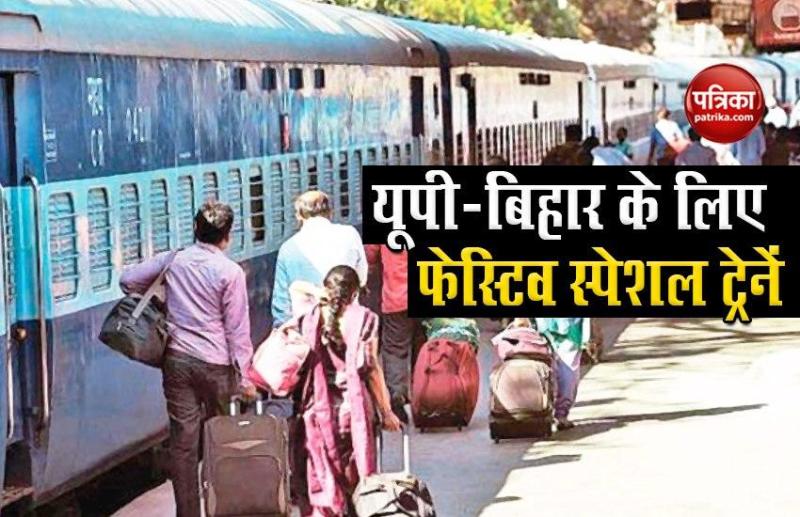 नई दिल्ली। दिवाली और छठ जैसे बड़े त्योहारों (Festive Season) को देखते हुए रेलवे ने कुछ दिनों पहले ही 46 स्पेशल ट्रेनें (Special Trains) चलाए जाने का ऐलान किया था। इसी बीच यूपी और बिहार (UP and Bihar) के लोगों के लिए रेलवे ने एक और सौगात दी है। इन दोनों रूटों पर पैसेंजर्स की भारी संख्या को देखते हुए 68 फेस्टिव सीजन स्पेशल ट्रेनों को चलाने का निर्णय लिया गया है। इससे यात्रियों को सफर में किसी तरह की दिक्कत नहीं होगी। रेलवे ने विशेष ट्रेनों की लिस्ट भी जारी कर दी है।