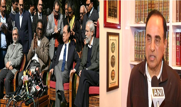 बीजेपी के राज्यसभा सांसद और वरिष्ठ अधिवक्ता सुब्रमण्यम स्वामी ने भी 4 जजों की प्रेस कॉन्फ्रेंस पर प्रतिक्रिया दी है। उन्होंने कहा है कि इस समस्या का समाधान निकालना बेहद ही आवश्यक है। स्वामी ने कहा है कि प्रेस कॉन्फ्रेंस करने वाले जजों पर कोई उंगली नहीं उठा सकता है, क्योंकि वो बहुत ईमानदार और ज्ञानी हैं। स्वामी ने कहा कि मैनें कई बार उनसे सामने केस लड़ा है। हमें उनका सम्मान करना चाहिए। प्रधान मंत्री को यह सुनिश्चित करना चाहिए कि 4 न्यायाधीश और सीजीआई वास्तव में एक विचार में आते हैं।